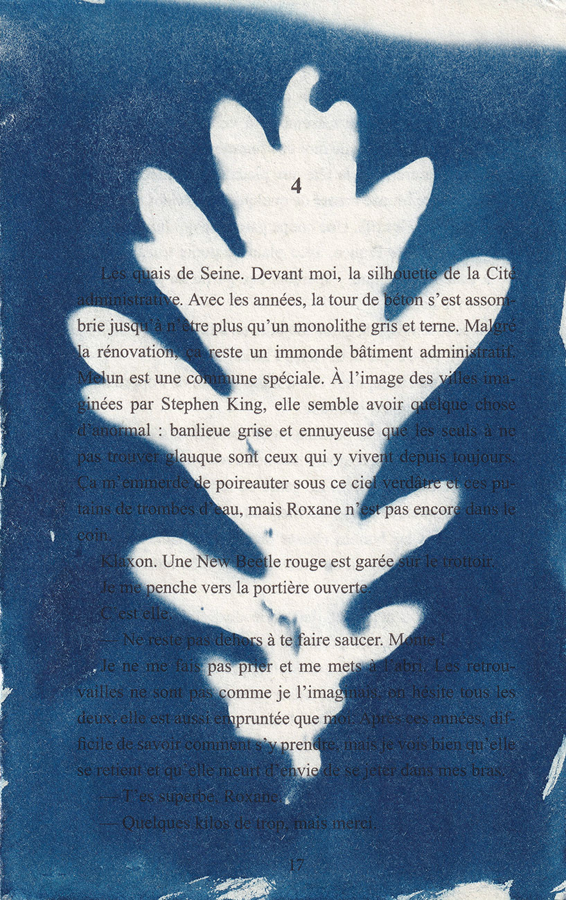 Série de cyanotypes réalisés sur des pages de livres - 2025.