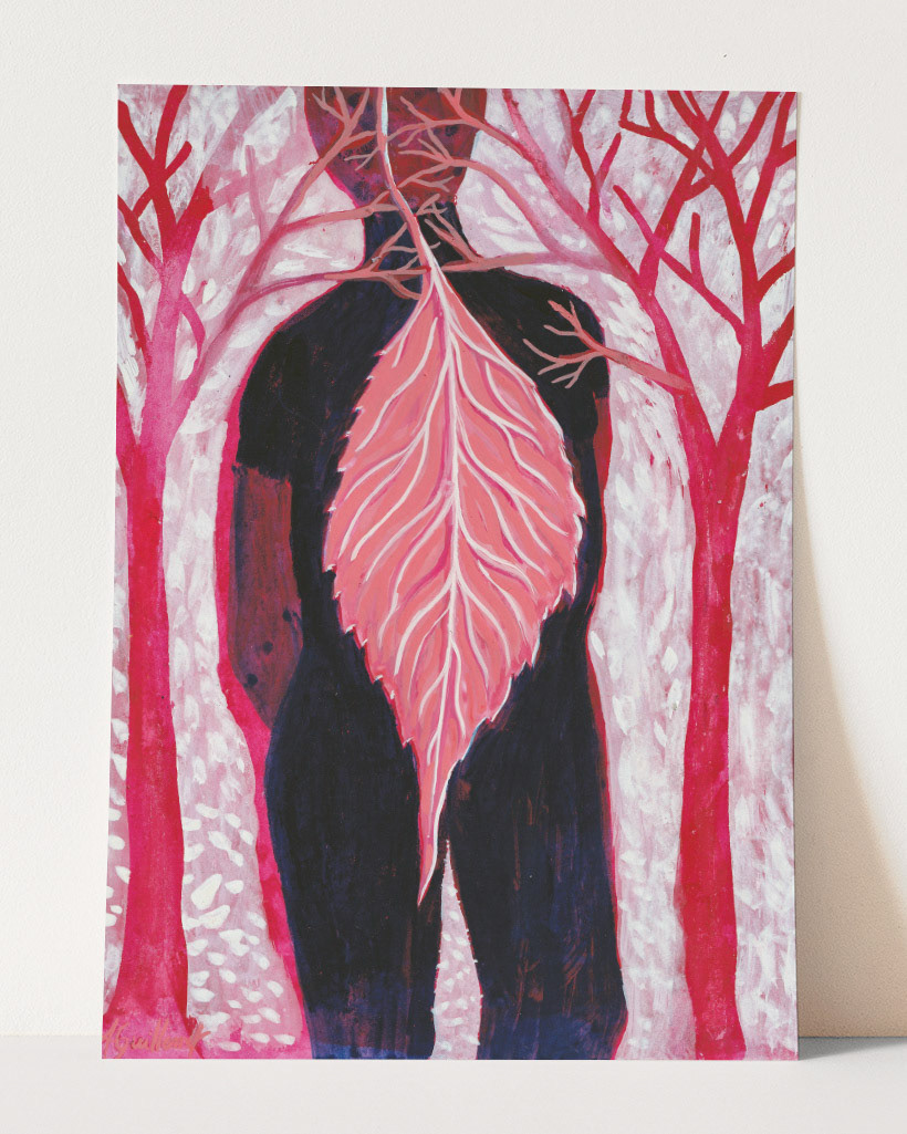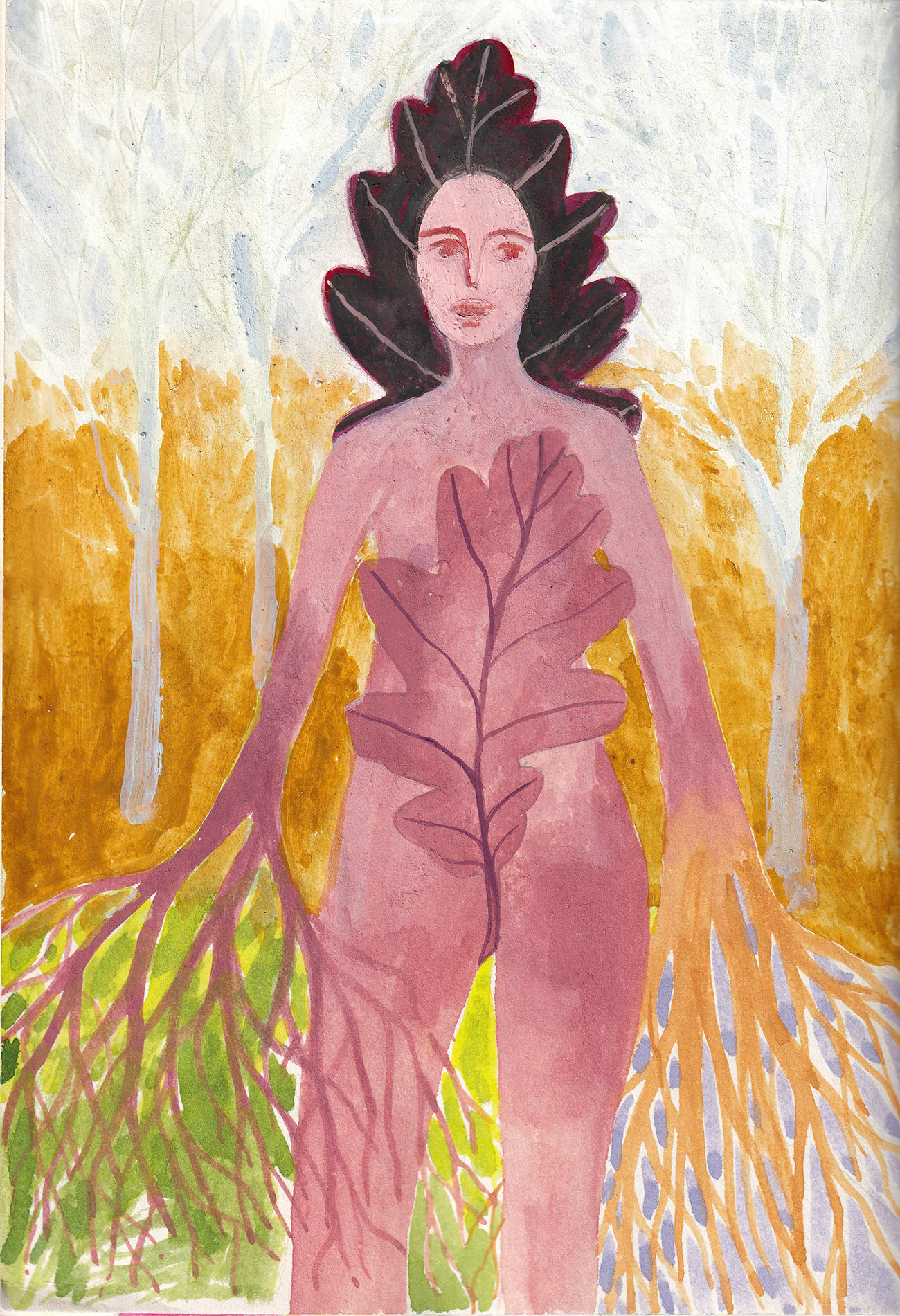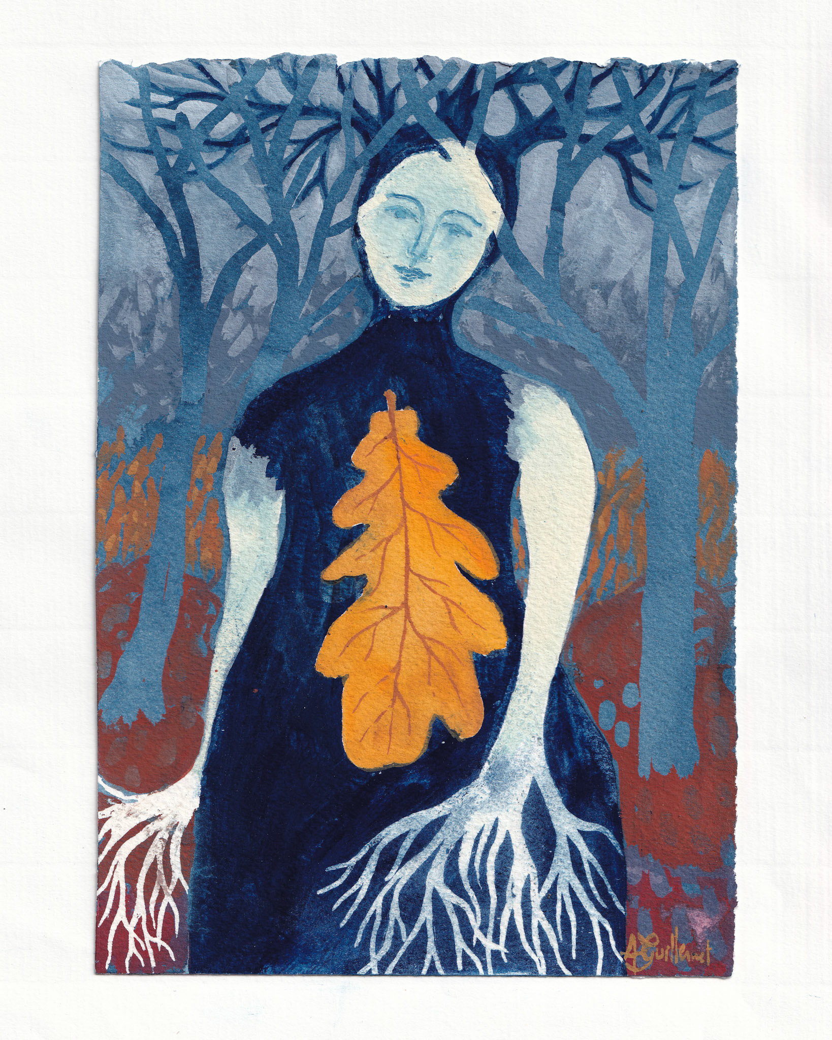 Femme feuille d'érable 🍁 Technique : peinture à l’huile et feuille d’or 24 carats sur carton entoilé - 25 x 25 cm - Exemplaire vendu