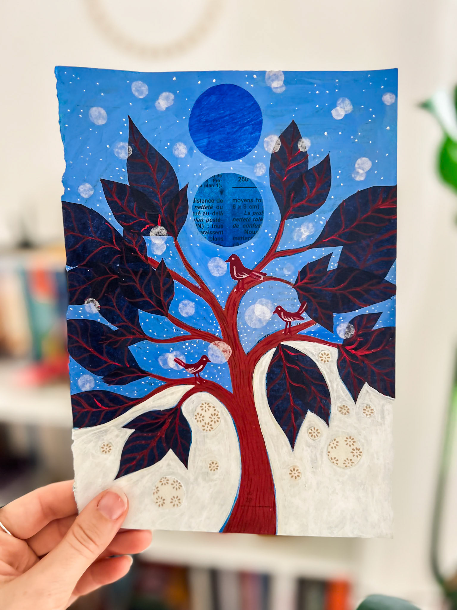 Dans cette série, je peins directement sur des pages de livres. Les mots imprimés apparaissent parfois en transparence, parfois disparaissent sous la couleur. Il arrive qu’un fragment de phrase, un mot, affleure encore à la surface. Chaque peinture-page ouvre une fenêtre où l’imaginaire s’échappe, invité à explorer toujours plus loin.