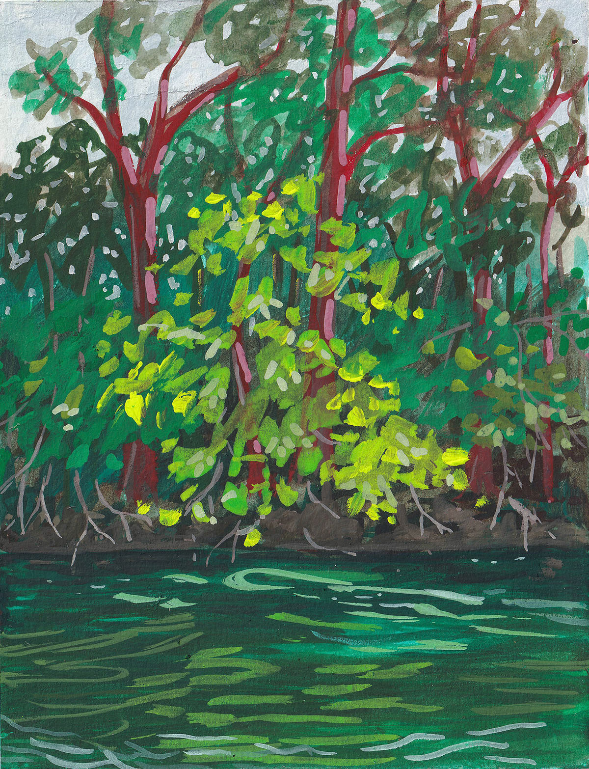 Dans cette série, le Loing est mon sujet : ses couleurs, ses mouvements, ses reflets, ses jeux d’ombres et lumières au fil de la journée. Je peins aussi bien en plein air à la gouache qu’en atelier ou sur mon iPad à partir de photo ou d’impressions laissées par des heures d’observation. Inspirer et être inspirée, cette série est accompagnée des photo de Quentin Kheyap.